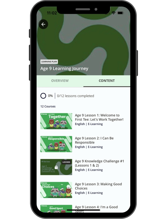 Participants will automatically be enrolled into the next age group’s content after their birthday if they remain active in the First Tee Program and will continue to have access to all prior content.